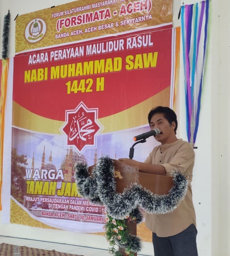 Ada ratusan masyarakat asal Tanah Jambo Aye, Panton Labu, Aceh Utara, yang berada di Banda Aceh, yang tergabung dalam Forum Silaturahmi Masyarakat Tanah Jambo Aye (Forsimata), memperingati Maulid Nabi Muhammad SAW tahun 2021, di Banda Aceh, Sabtu, 30 Januari 2021.