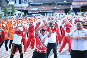 SUBULUSSALAM – Sebanyak 31 grup dari beberapa desa di Kota Subulusalam, seluruh pukesmas, Persit Kartika Chandra Kirana Cabang XLI Kodim 0118/Subulussalam dan Bhayangkari mengikuti lomba senam kreasi di Lapangan Beringin, Sabtu, 12 Agustus 2023.