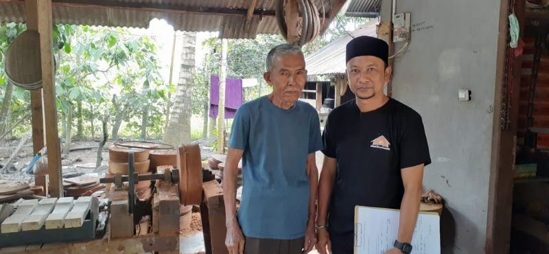 Penulis bersama dengan Muhammad Isa Daud selaku pembuat dan pemain canang ceureukeh pada saat observasi dan wawancara singkat di kediamannya, Senin, 18 Januari 2021.
