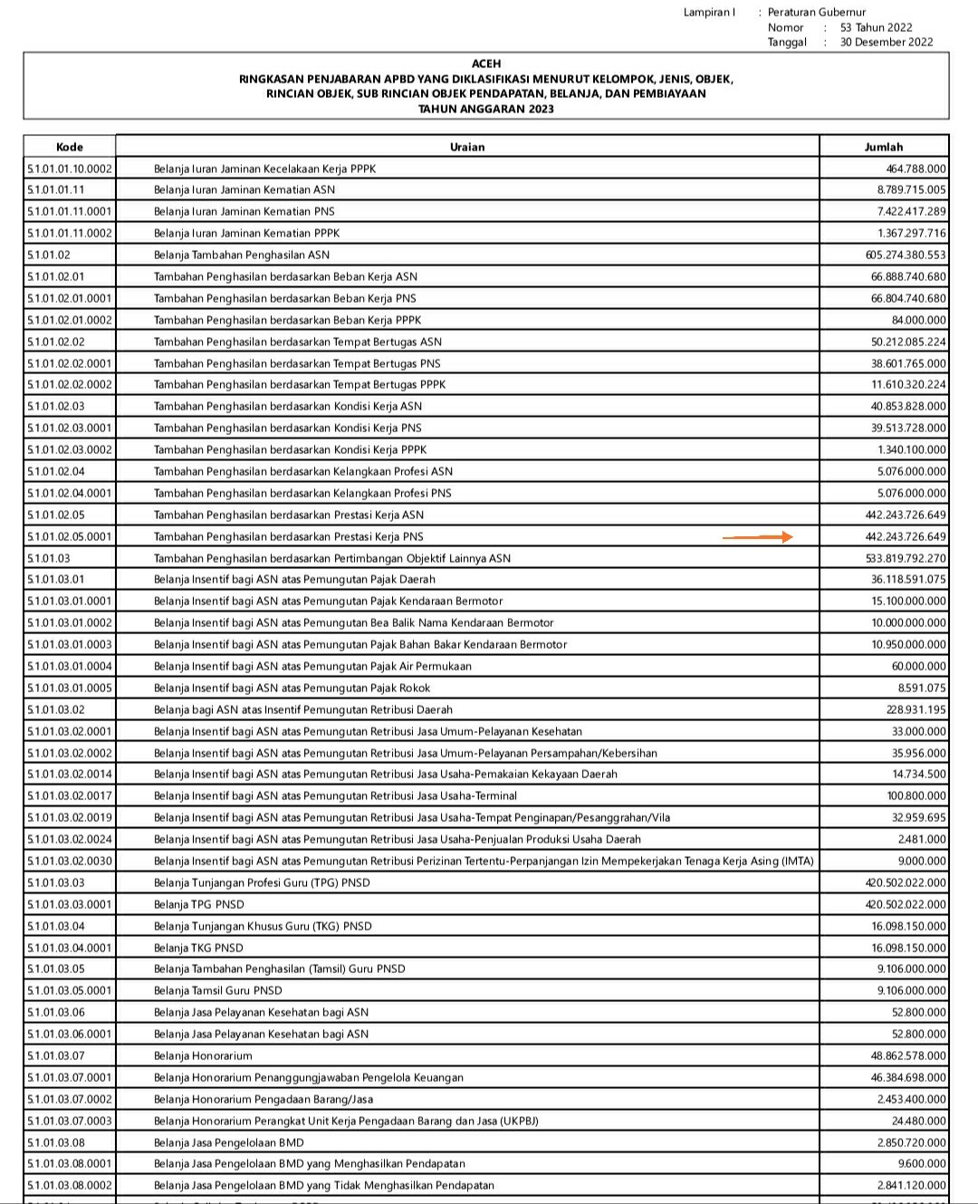 [Sumber: Lampiran Pergub Aceh tentang Penjabaran APBA tahun anggaran 2023. Foto: portalsatu.com/]