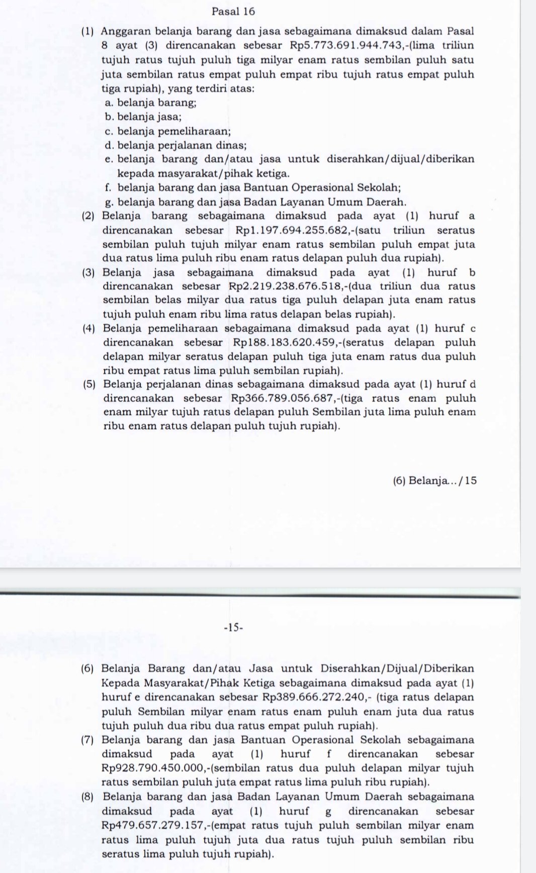 Selain belanja perjalanan dinas Rp366,7 M lebih, rincian dari BBJ Rp5,773 T lebih adalah belanja barang Rp1,197 T lebih; belanja jasa Rp2,219 T lebih; belanja pemeliharaan Rp188,183 M lebih; belanja barang dan/atau jasa untuk diserahkan/dijual/diberikan kepada masyarakat/pihak ketiga Rp389,666 M lebih; belanja barang dan jasa Bantuan Operasional Sekolah Rp928,790 M lebih; dan belanja barang dan jasa Badan Layanan Umum Daerah Rp479,657 M lebih.