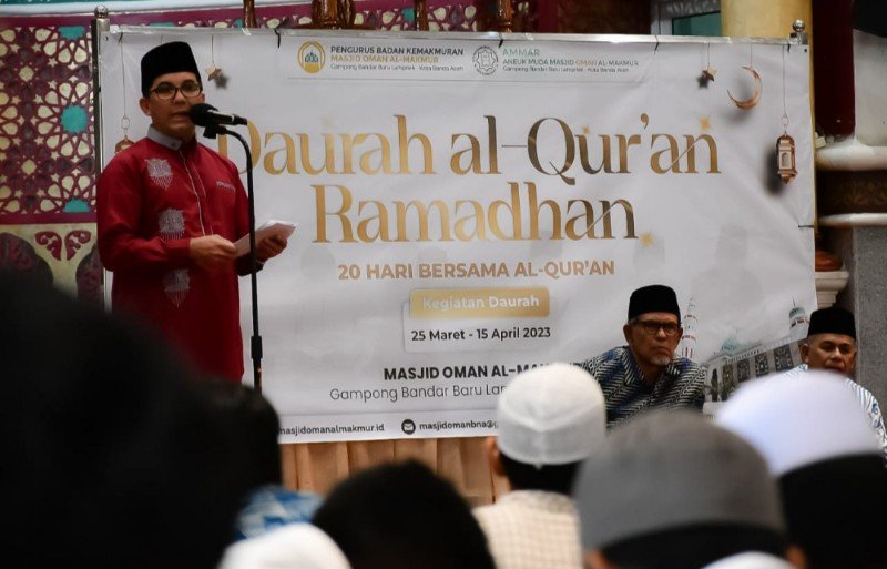 Pj Wali Kota Banda Aceh, Bakri Siddiq dalam sambutannya mengatakan atas nama Pemerintah Kota Banda Aceh mengucapkan terima kasih dan memberikan apresiasi untuk program Daurah Ramadan yang digelar di Masjid Oman sedari 25 Maret lalu.