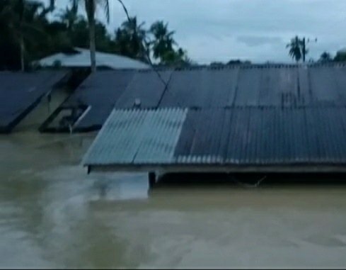 ACEH UTARA – Gampong Lubok Pusaka dan Buket Linteung, Kecamatan Langkahan, Kabupaten Aceh Utara, dilanda banjir besar, Ahad, 22 Januari 2023, pagi.