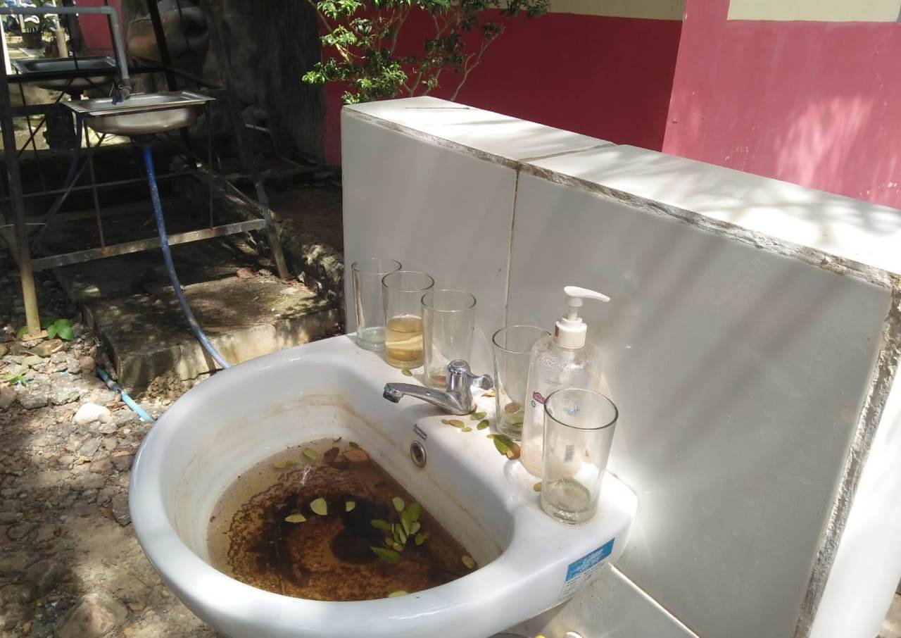 Namun, wastafel tersebut diduga tidak berfungsi. Saat dibuka keran pada wastafel itu tidak keluar air. Lubang saluran air pada sebagian wastafel itu tampak tersumbat dan kurang bersih. Salah satu keran tempat cuci tangan itu sudah patah. Pipa air yang tersambung dengan wastafel terpasang di atas permukaan tanah.