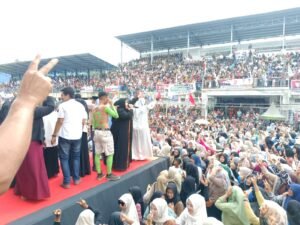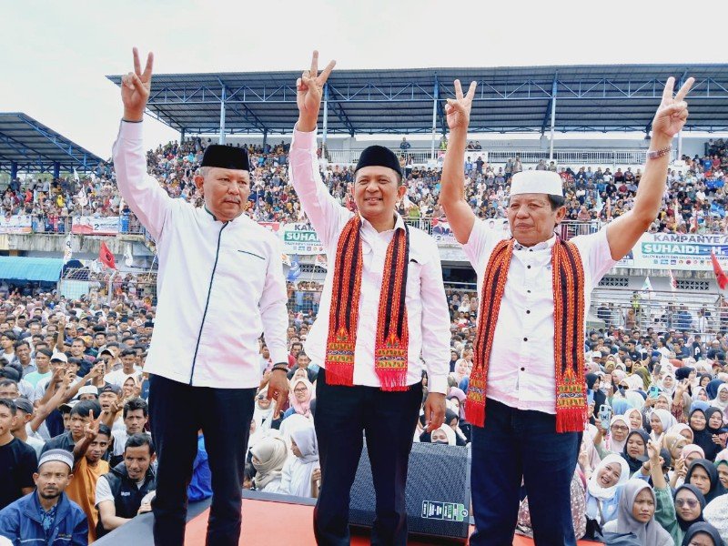 BLANGKEJEREN – Belasan ribu pendukung calon Bupati dan Wakil Bupati Kabupaten Gayo Lues Suhaidi-Maliki momor urut 2 padat merayap di Stadion Seribu Bukit Blangkekejeren, Rabu, 20 November 2024.