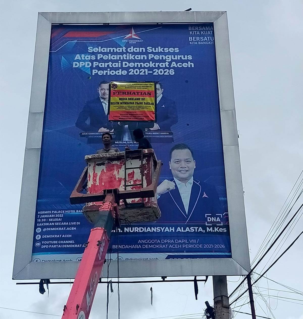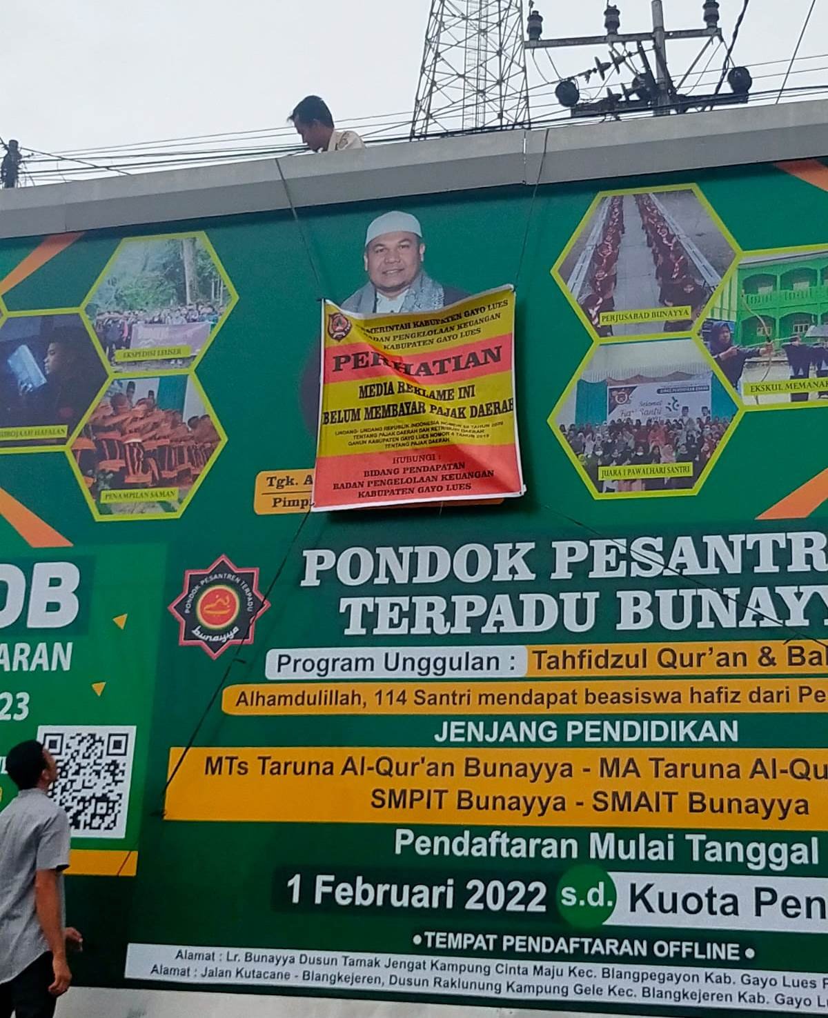 Bidang Pendapatan BPKK Gayo Lues memasang tanda bertuliskan “PERHATIAN: MEDIA REKLAME INI BELUM MEMBAYAR PAJAK DAERAH” pada tiga papan reklame tersebut.