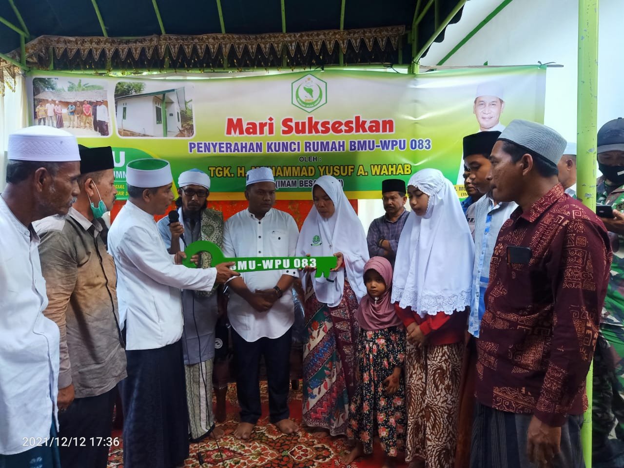 Rumah tersebut dibangun dari hasil donasi patungan komunitas masyarakat Aceh di dalam maupun di luar negeri melalui donasi BMU Peduli. Rumah dengan kode BMU 083 diserahkan langsung oleh Imam Besar BMU Tgk H Muhammad Yusuf A Wahab atau Tu Sop kepada Halimah Abdullah (41) warga Gampong Meunasah Reudeup Kecamatan Pandrah Kabupaten Bireuen.