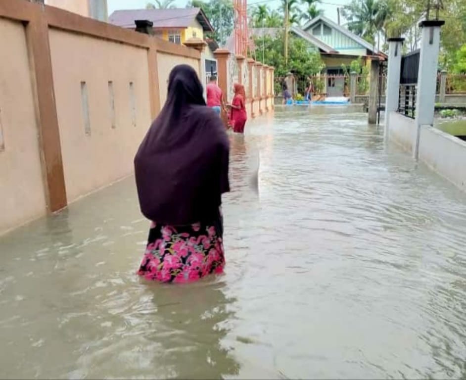 Hampir sepanjang Daerah Aliran Sungai (DAS) Sungai Krueng Tukah, terendam.