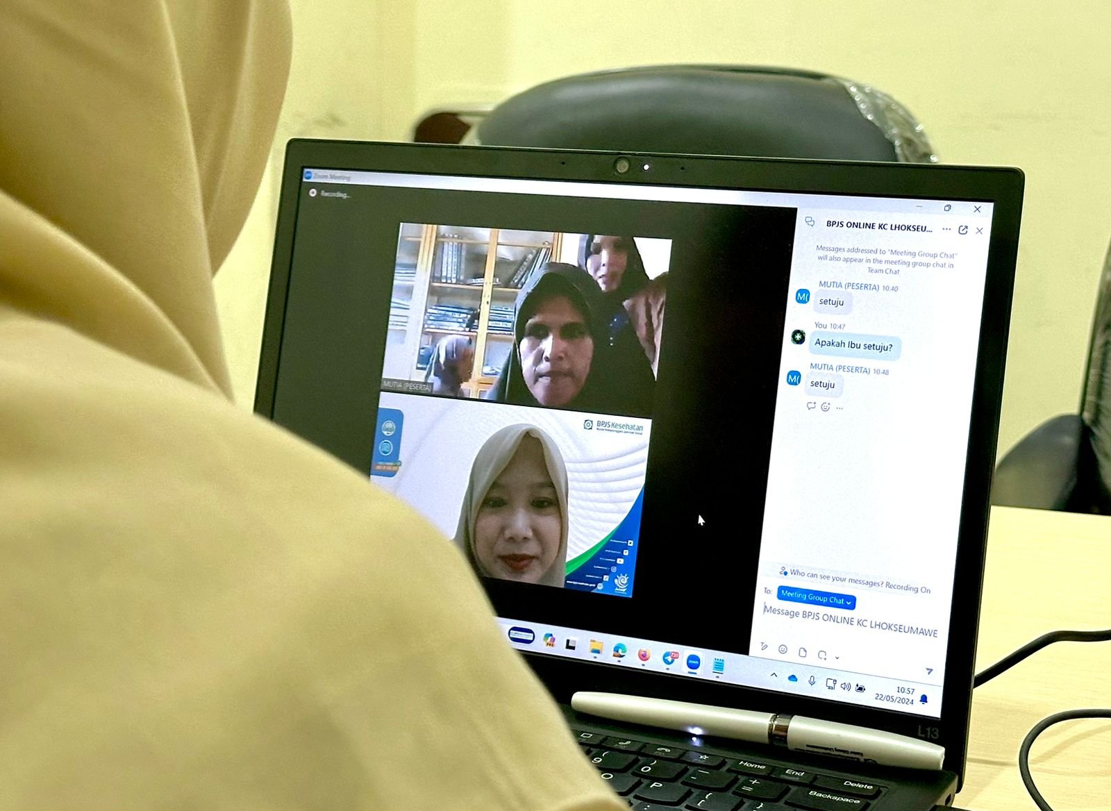 Kegiatan pelayanan itu dilakukan melalui media video conference dengan menggunakan aplikasi zoom meeting, guna memfasilitasi akses masyarakat ke layanan administrasi Program Jaminan Kesehatan Nasional (JKN) secara langsung dengan petugas BPJS kesehatan setempat. Hal itu sebagai upaya memberikan pelayanan yang mudah, cepat dan setara.