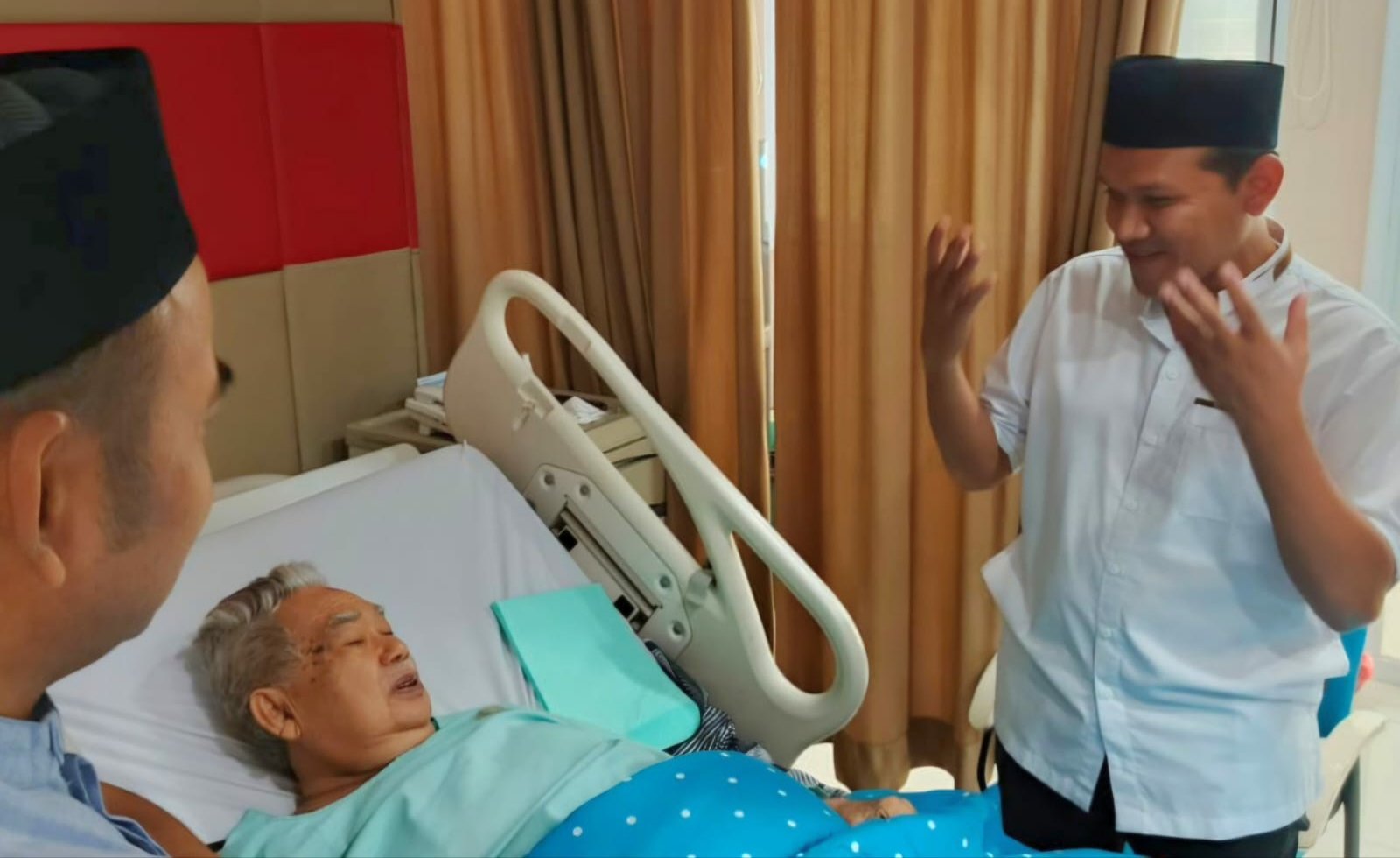 BANDA ACEH – Calon Wakil Gubernur Aceh, Fadhlullah alias Dek Fad, mengunjungi mantan Gubernur Aceh, dr. Zaini Abdullah atau Abu Doto, di Rumah Sakit Umum dr. Zainal Abidin (RSUZA), Banda Aceh, Jumat, 25 Oktober 2024. Abu Doto yang pernah memimpin Aceh periode 2012–2017, sedang dirawat dirumah sakit tersebut