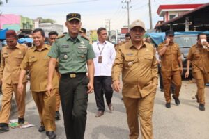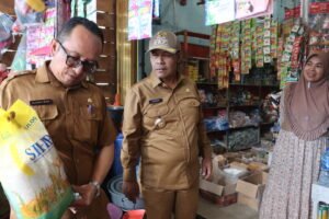 Setelah memastikan stok beras di Gudang Bulog, Azhari bersama Dandim dan Kapolres didampingi dinas terkait blusukan ke pasar harian untuk mengecek harga bahan pokok di antaranya beras SPHP, minyak goreng, telor ayam, gula, bawang merah bawang putih, capai merah, cabai rawit, tomat dengan harga yang masih stabil.