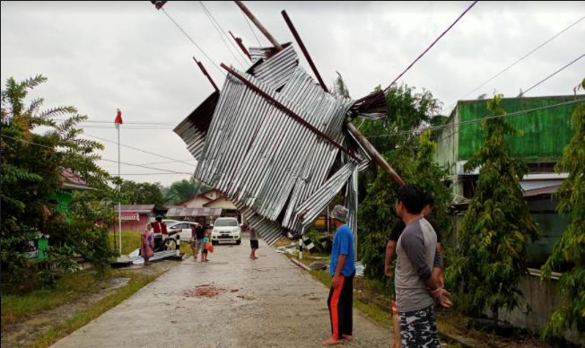 Beberapa rumah masyarakat di Kompleks Bidadari Desa Penanggalan Timur rusak akibat angin puting beliung, atap seng terbang dan sebagian rumah berkontrukdi papan rusak berat akibat diterjang puting beliung.