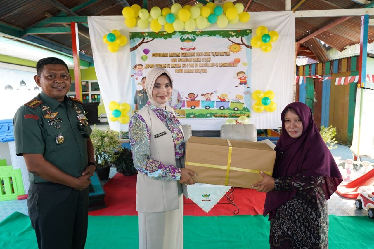 LHOKSEUMAWE – Danrem 011/Lilawangsa, Kolonel Inf Ali Imran bersama Ketua Persit Kartika Chandra Kirana (KCK) Koorcab Rem 011 PD IM, Ny. Dini Imran, menyumbang alat peraga pendidikan belajar merdeka untuk Taman Kanak-Kanak (TK) Yayasan Kartika Lilawangsa, Kota Lhokseumawe, Rabu, 27 Agustus 2025.