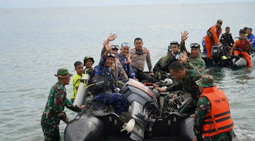 Danrem Kapti Hertantyawan bersama tim berkumpul di Pos 56 PT PAG, tepi pantai Ujong Batee, Desa Blang Pulo, Kecamatan Muara Satu, Kota Lhokseumawe. Lalu, mereka menyelam dan berenang untuk mengibarkan bendera merah putih di bawah laut.