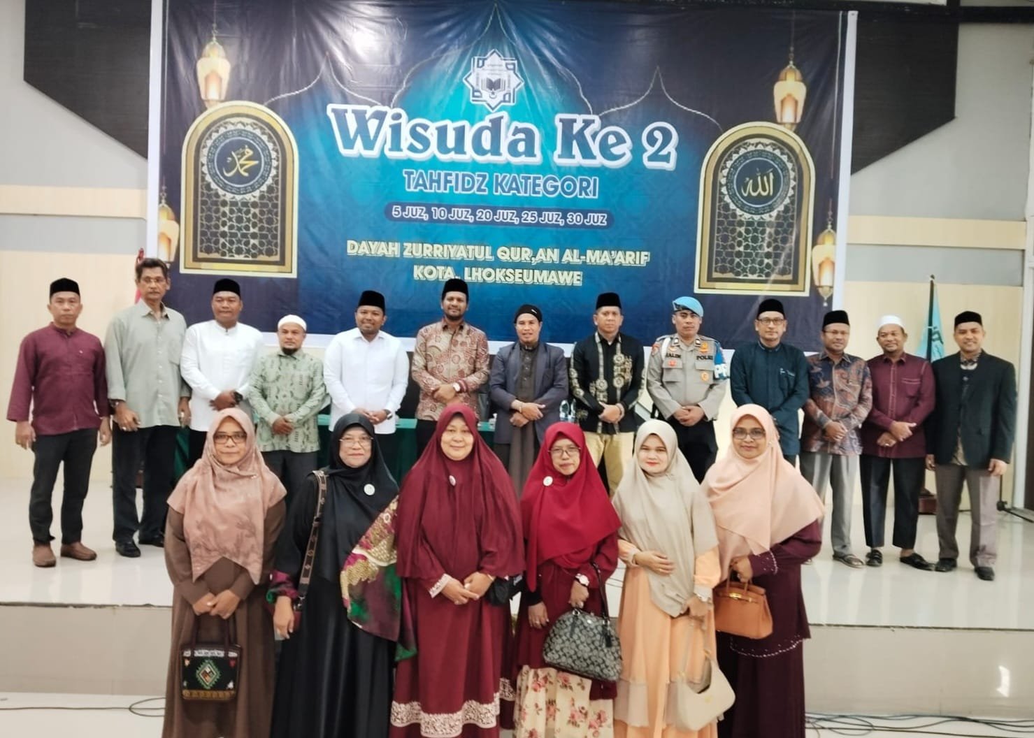 Acara wisuda tersebut dihadiri oleh Ketua DPRK Lhokseumawe Faisal H. Isa, Kepala Dinas Syariat Islam dan Pendidikan Dayah Kota Lhokseumawe Sufri, S.Ag., M.M., dan Kepala Dinas Penanaman Modal, PTSP, dan Tenaga Kerja, Safriadi (mantan Camat Blang Mangat), sejumlah tokoh masyarakat, serta perwakilan lembaga-lembaga kemanusiaan dari dalam dan luar negeri.[](ril)