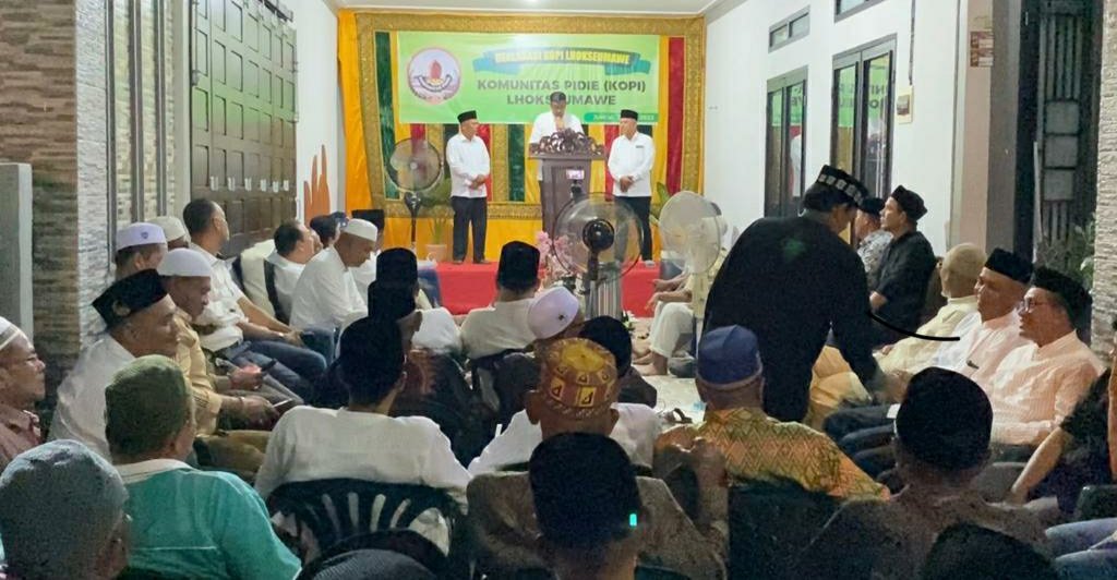 LHOKSEUMAWE – Masyarakat asal Kabupaten Pidie di Kota Lhokseumawe menggelar deklarasi Komunitas Pidie (KoPi) Lhokseumawe, di Rumah H. Basri, pengusaha asal Pidie, di Desa Simpang Empat, Kecamatan Banda Sakti, Kota Lhokseumawe, Jumat, 28 Juli 2023, bakda shalat Isya. Usai deklarasi dan pengumuman pengurus KoPi Lhokseumawe periode 2023-2026 langsung dilakukan penggalangan dana untuk pengadaan satu mobil ambulans.