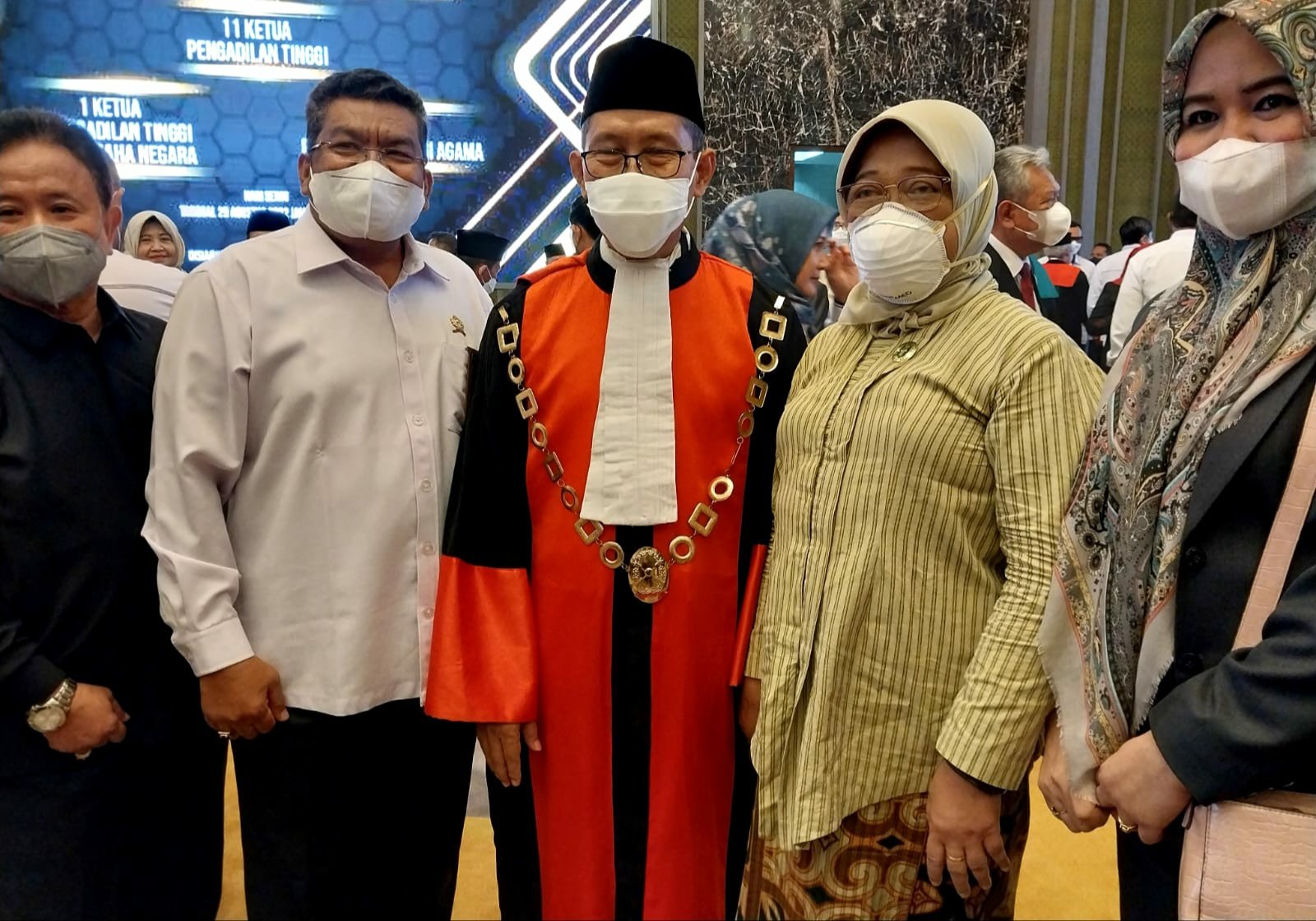 Acara khidmad ini dihadiri semua Hakim Agung RI, Sekretaris Mahkamah Agung (Sekma), semua Dirjen dan Pejabat Eselon I, para Hakim Tinggi serta Panitera dan Sekretaris PT masing-masing KPT yang dilantik.