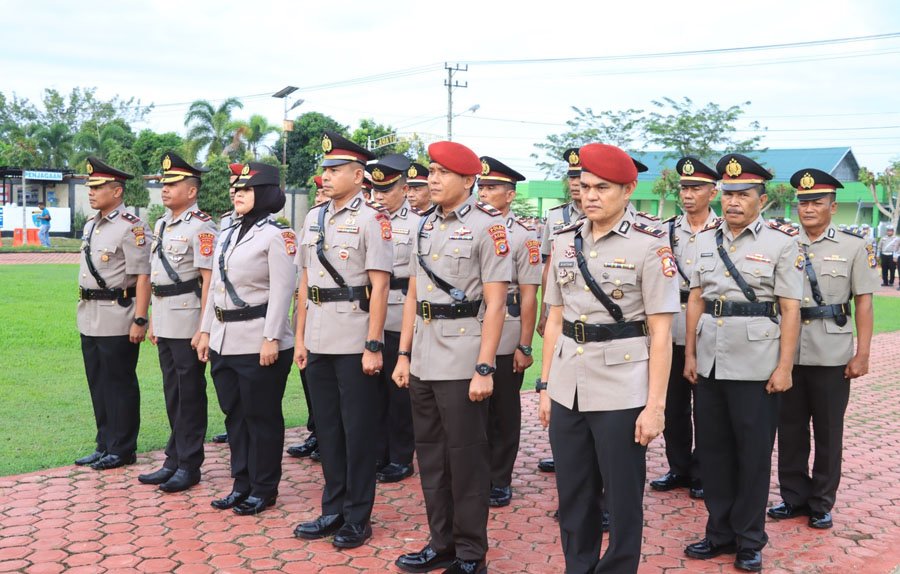 LHOKSUKON – Kapolres Aceh Utara AKBP Nanang Indra Bakti, S.H., S.I.K., memimpin upacara serah terima jabatan dua Kabag, empat Kasat, dan lima Kapolsek jajaran polres itu di Lapangan Tribrata Mapolres setempat, Selasa, 18 Februari 2025.