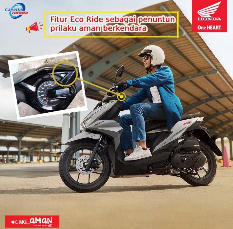 1.Lampu indikator warna hijau bertuliskan “eco” pada sepeda motor All New Honda Beat