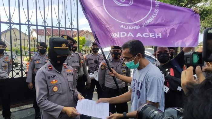 BANDA ACEH – Sejumlah jurnalis yang bertugas di Banda Aceh dari berbagai lembaga profesi wartawan memprotes tindakan oknum TNI AU yang memukul dua wartawan di Sumatera Utara. Aksi ini dipusatkan di depan Masjid Raya Baiturrahman, Banda Aceh, Jumat, 19 Agustus 2016.[]