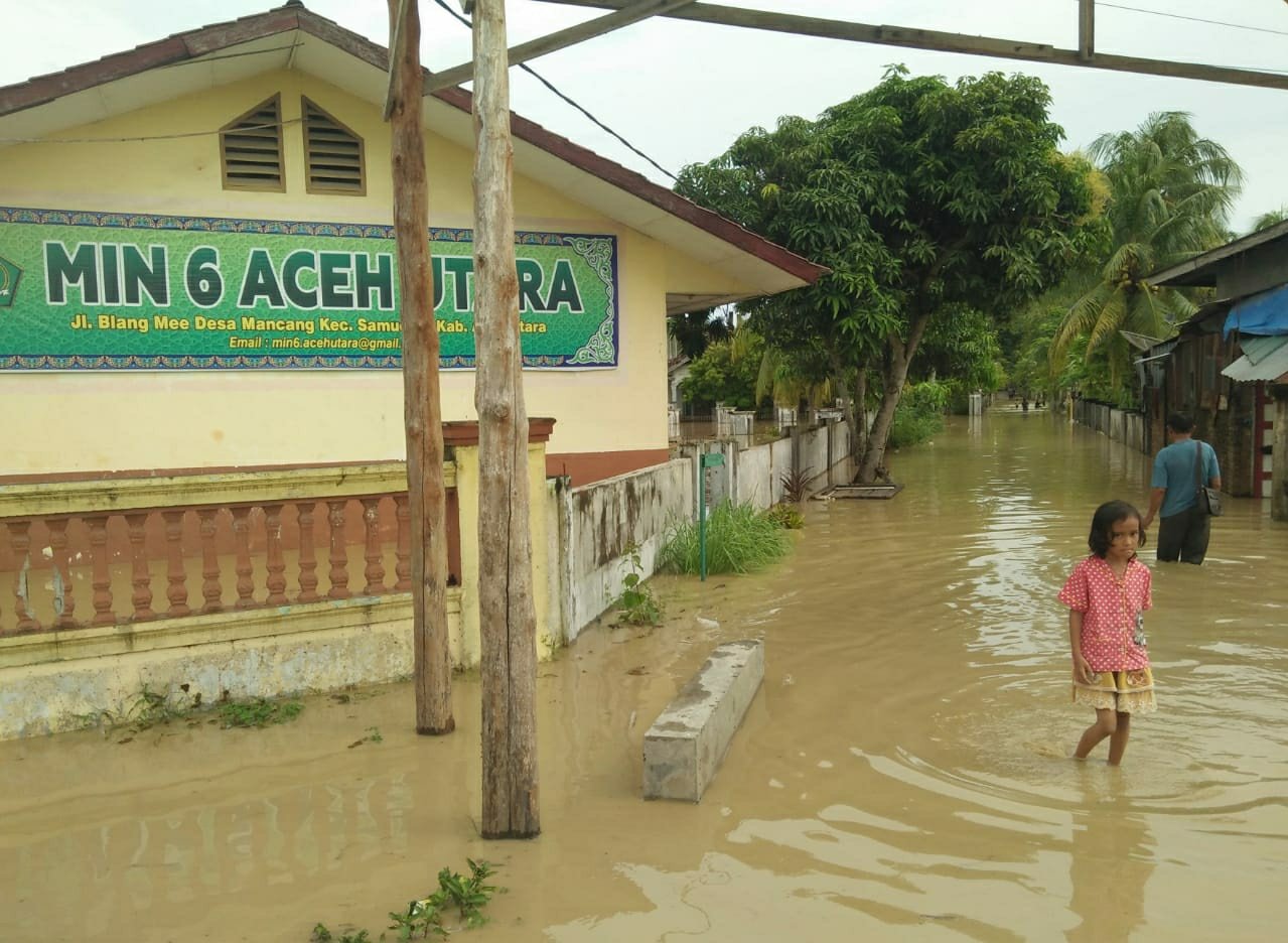 Jalan desa, rumah warga, dan kompleks masjid terendam banjir. Jalan Banda Aceh–Medan kawasan Desa Mancang juga tergenang hingga menyebabkan arus lalu lintas terganggu.