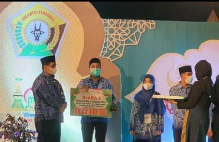 BANDA ACEH – Ustaz Ahsanur Rifqi, S.Pd.I., guru MTsN 3 Aceh Timur meraih juara 1 pada Musabaqah Tilawatil Quran (MTQ) ke-5 Korps Pegawai Negeri Indonesia (Korpri) tingkat nasional tahun 2021 yang dilaksanakan di Kota Kendari, Sulawesi Tenggara, 12-21 November 2021. Cabang yang diikuti Ustaz Rifqi adalah Tahfizh Surat Al-Baqarah Putra.