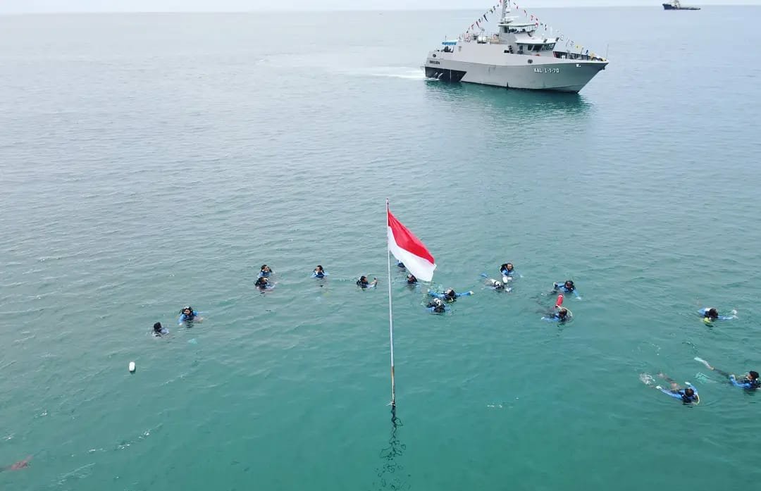 “Pengibaran bendera dilakukan dari dasar laut dengan kedalaman 8 meter, hingga berkibar dengan gagahnya di tiang setinggi 5 meter dari permukaan laut. Ini sebagai simbol persatuan dalam merayakan Hari Ulang Tahun ke-76 Kemerdekaan Indonesia dan sebagai momentum untuk Indonesia Tangguh dan Indonesia Tumbuh, serta momentum Bersatu Melawan Pandemi Covid-19 yang masih melanda Indonesia,” katanya.