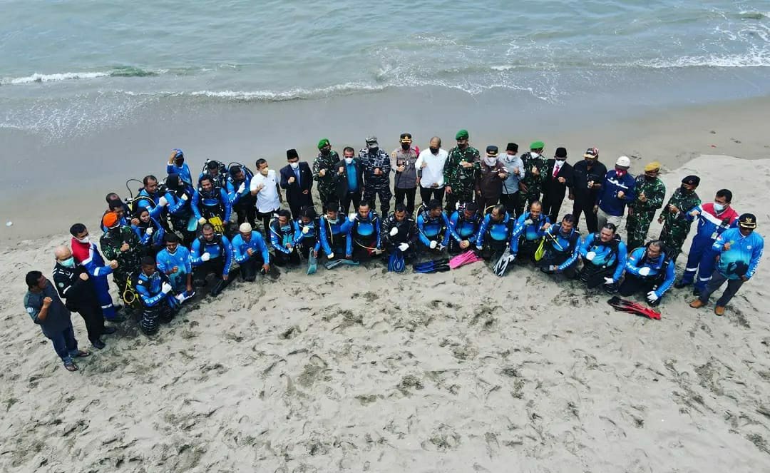 LHOKSEUMAWE – Personel gabungan melakukan pengibaran bendera merah putih di dasar laut Ujong Bate, Kecamatan Muara Dua, Lhokseumawe, Menyambut Hari Kemerdekaan Indonesia atau Hari Ulang Tahun (HUT) ke-76 Republik Indonesia,Selasa, 17 Agustus 2021.