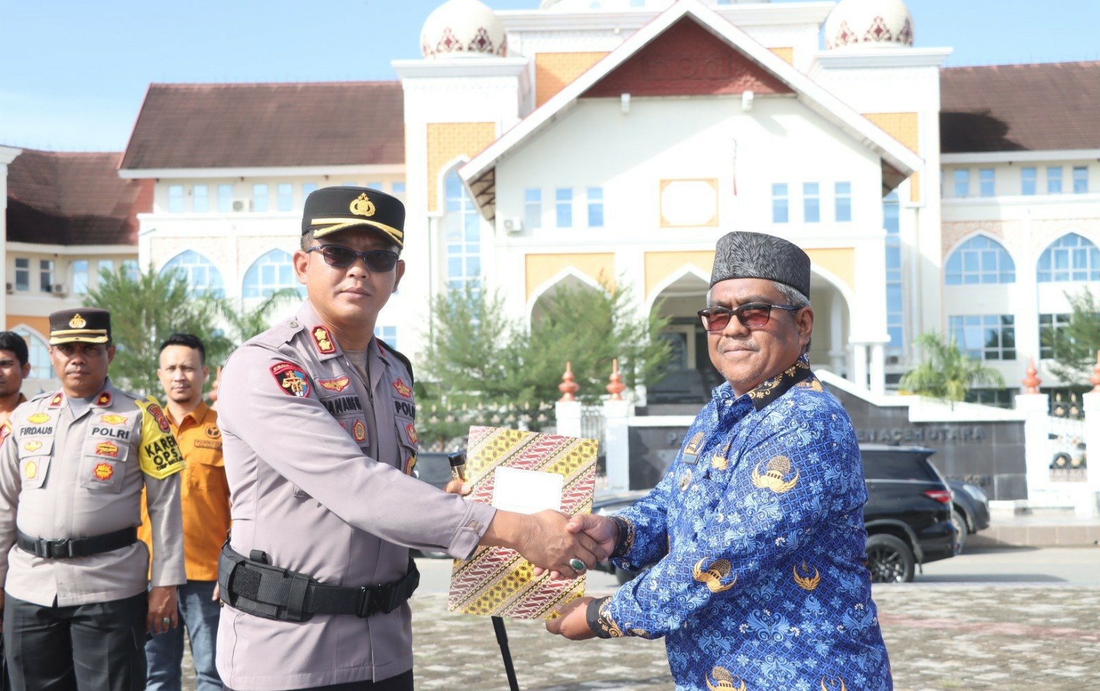 Serah terima itu dilakukan pada rangkaian Apel Siaga Satlinmas dan Ikrar Netralitas Aparatur Sipil Negara (ASN) dalam rangka pelaksanaan Pemilihan Kepala Daerah (Pilkada) 2024, di Lapangan Upacara Kantor Bupati, Landing, Kecamatan Lhoksukon, Aceh Utara.