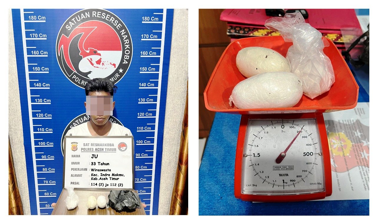 Hal tersebut disampaikan Kapolres Aceh Timur AKBP Nova Suryandaru, S.I.K., Ahad, 30 Juni 2024. Menurut Nova, tersangka kasus tindak pidana penyalahgunaan narkotika tersebut berinisial JU (33), warga Kecamatan Indra Makmu, Kabupaten Aceh Timur.