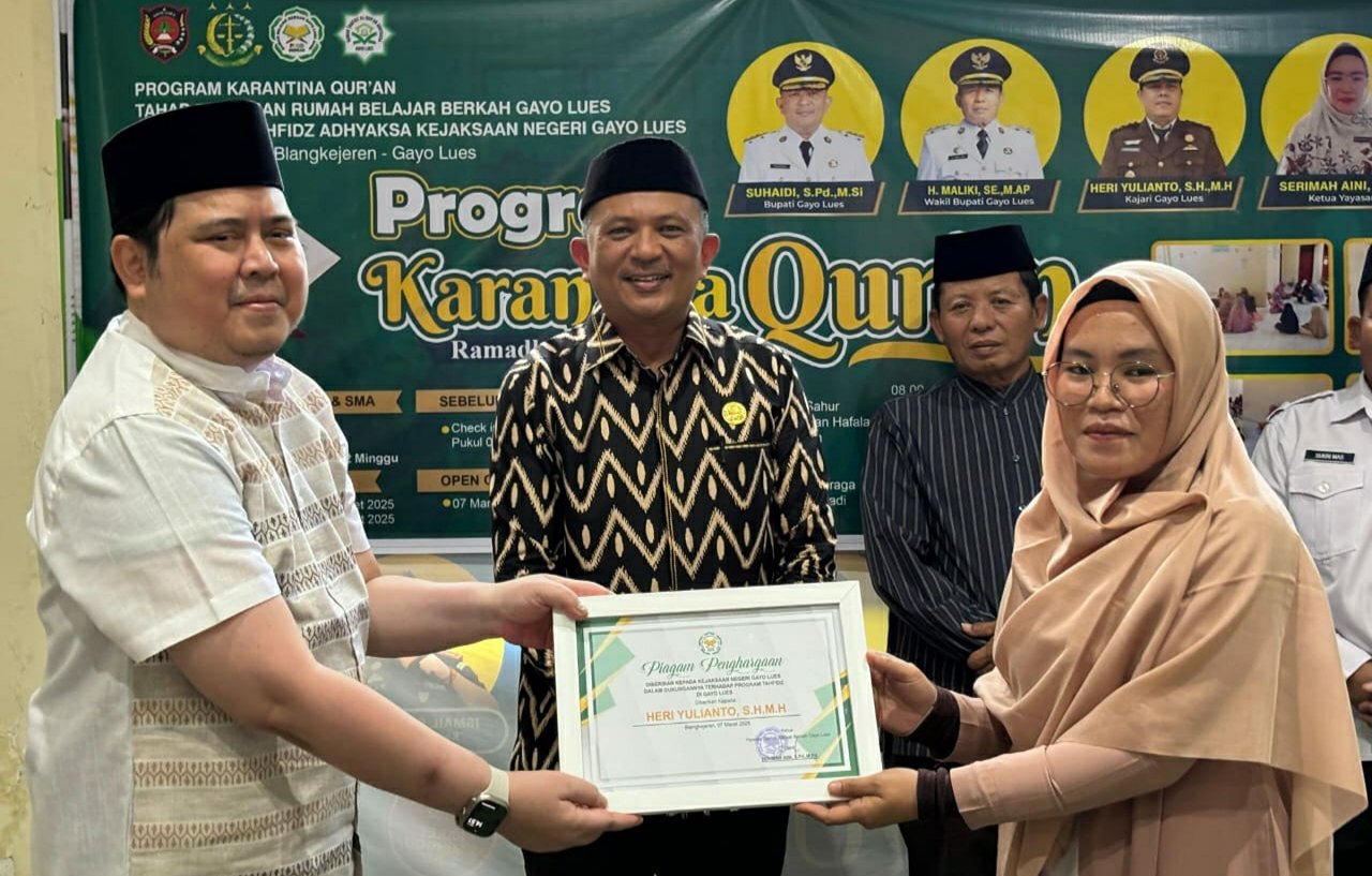 BLANGKEJEREN – Kepala Kejaksaan Negeri Gayo Lues, Heri Yulianto, S.H., M.H., bersama Bupati Gayo Lues Suhaidi membuka Program Karantina Alquran Tahap V di Rumah Tahfidz Kejari Gayo Lues. Kegiatan itu rutin diadakan Kejari setiap Ramadan.