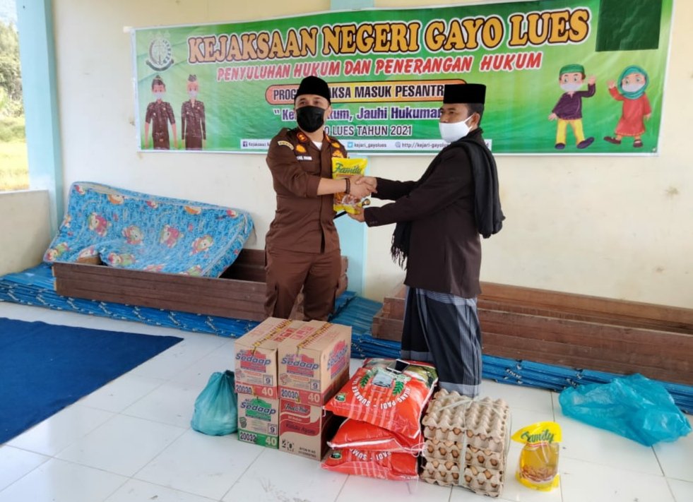 BLANGKEJEREN – Para pegawai Kejaksaan Negeri Gayo Lues dipimpin Ismail Fahmi, S.H., selaku Kajari melakukan bakti sosial, Jumat, 11 Juni 2021. Selain menggelar kegiatan ceramah, penegak hukum itu juga mengunjungi SDLB di Desa Leme, dan pesantren di Desa Penggalangan, Kecamatan Blangkejeren.