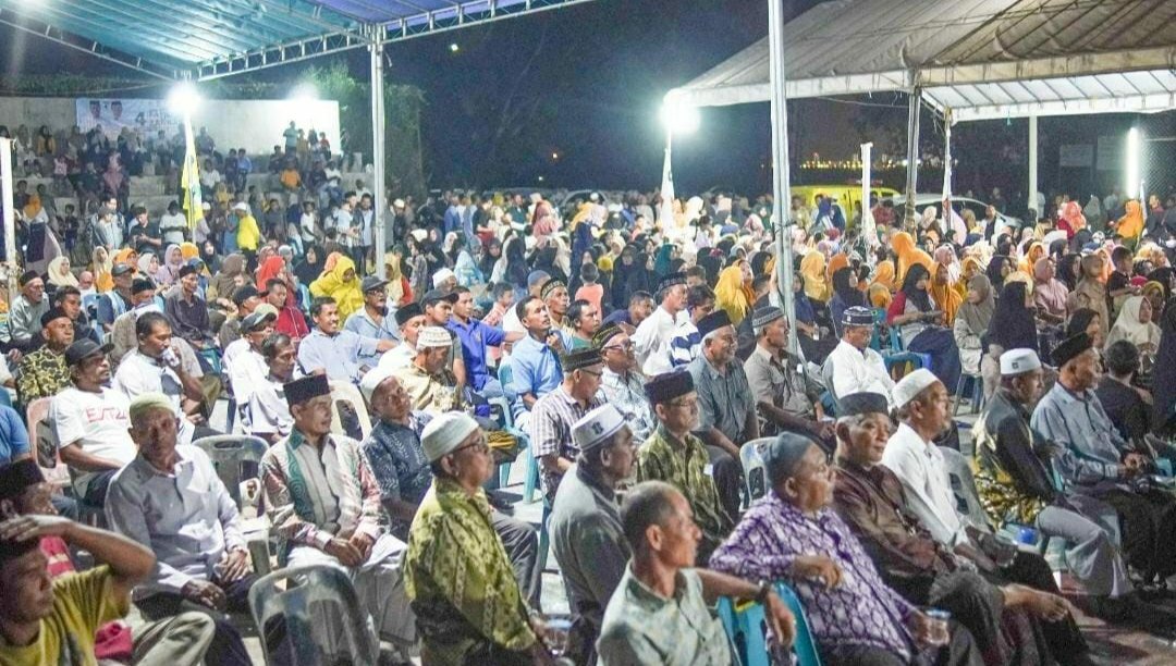 LHOKSEUMAWE – Ribuan warga Gampong Blang Pulo, Kecamatan Muara Satu, Lhokseumawe, mengikuti kampanye pasangan calon wali kota-wakil wali kota nomor urut 4, H. Fathani-H. Zarkasyi, di lapangan desa itu, Sabtu, 26 Oktober 2024, malam.