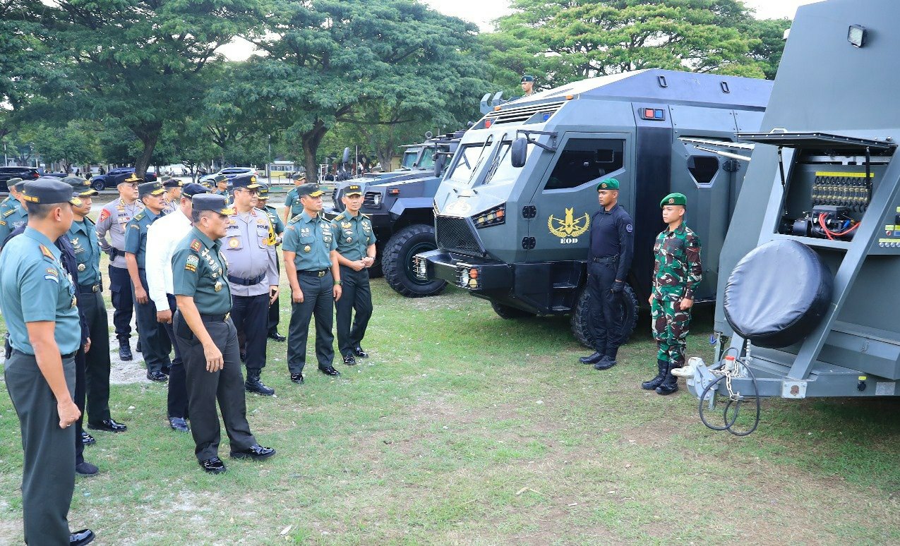 BANDA ACEH — Kapolda Aceh Irjen Achmad Kartiko menghadiri apel gelar pasukan dan alutsista dalam rangka kesiapan pengamanan Pilkada Serentak 2024 Kodam Iskandar Muda (IM) di Lapangan Blang Padang, Kota Banda Aceh, Selasa, 24 September 2024.