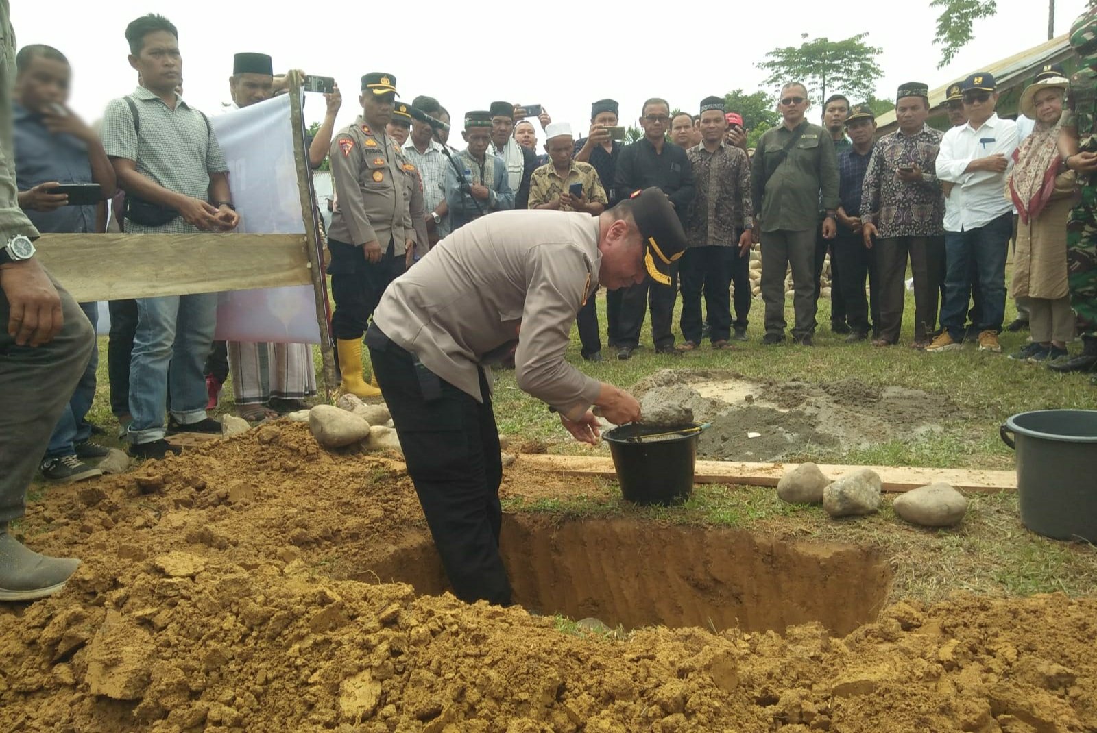 Setelah menyampaikan kata sambutannya di balai tersebut, Kapolres Deden Heksaputera, Pj. Bupati Mahyuzar, Danrem Kapti Hertantyawan, Dandim Hendra Sari Nurhono melakukan peletakan batu pertama pembangunan Musala Sarah Raja. Lalu doa bersama dipimpin Tgk. Muslem, Pimpinan Dayah Bustanul Muttaqin Dusun Tanah Merah, Desa Lubok Pusaka, yang rutin mengajarkan ilmu agama kepada masyarakat Sarah Raja.