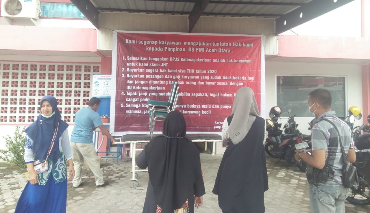 Salah karyawan RS PMI Aceh Utara, Azkari Fikri, kepada wartawan mengatakan pada April 2020 sekitar 100 karyawanq dirumahkan oleh pihak rumah sakit akibat pandemi Covid-19. Sedangkan total karyawan 130 orang. Namun, sampai saat ini belum ada kejelasan dari pihak rumah sakit terkait pembayaran sisa THR tahun 2020, sehingga pihaknya dari perwakilan karyawan melakukan protes serta menuntut agar segera dibayar uang pesangon.