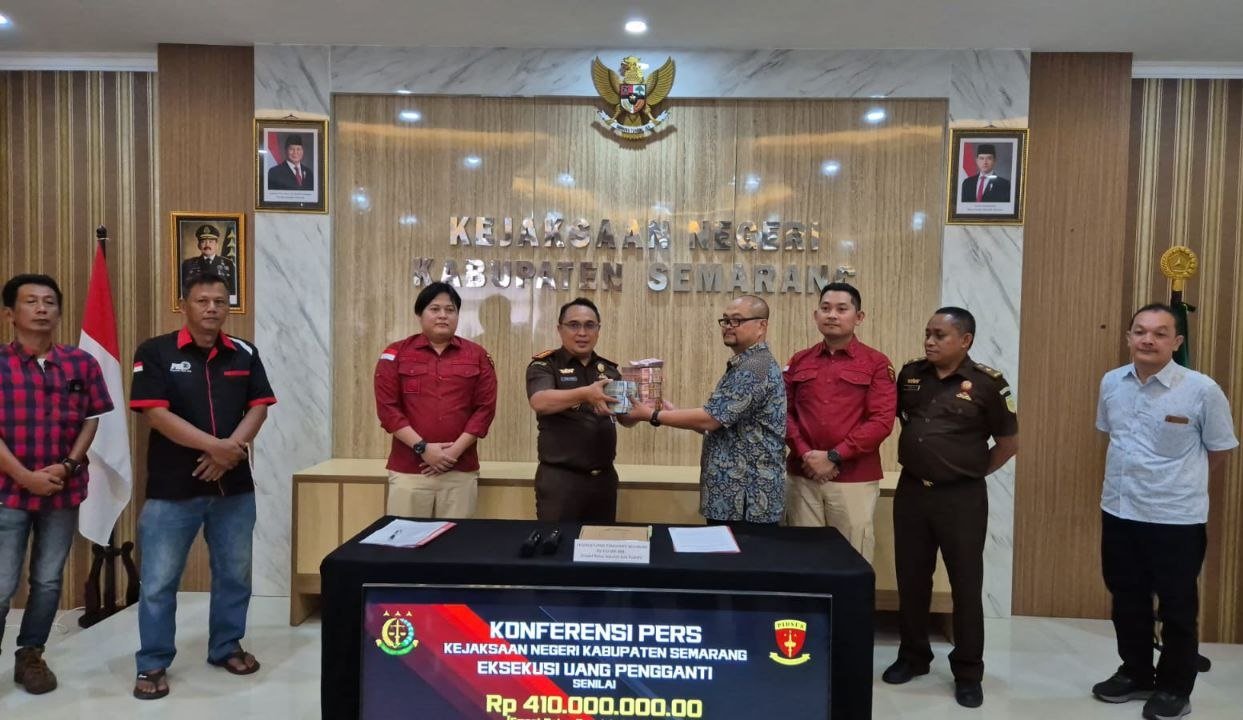 Kepala Kejaksaan Negeri Kabupaten Semarang, Ismail Fahmi, didampingi Kepala Seksi Tindak Pidana Khusus Putra Riza Akhsa Ginting serta Jaksa Penuntut Umum (JPU), Rabu, 4 Juni 2025, mengatakan eksekusi uang pengganti Rp410 juta dalam perkara korupsi itu atas nama terpidana Sunardi Bin Sucipto, yang telah berkekuatan hukum tetap.