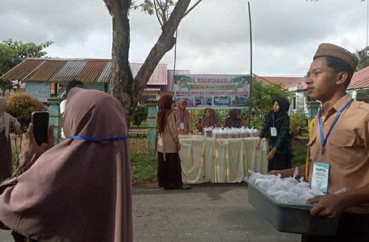 Maulida Rahmi, Guru Bimbingan Konseling SMAN 1 Madat menyebut takjil yang dibagikan berupa bubur sebanyak 400 paket.