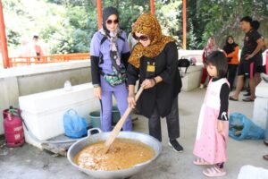 Setelah aksi bersih-bersih di seputaran lokasi Wisata Pemandian Penuntungan Namo Sampuren, mereka siang bersama dengan menu lauk Kuah Beulangong.