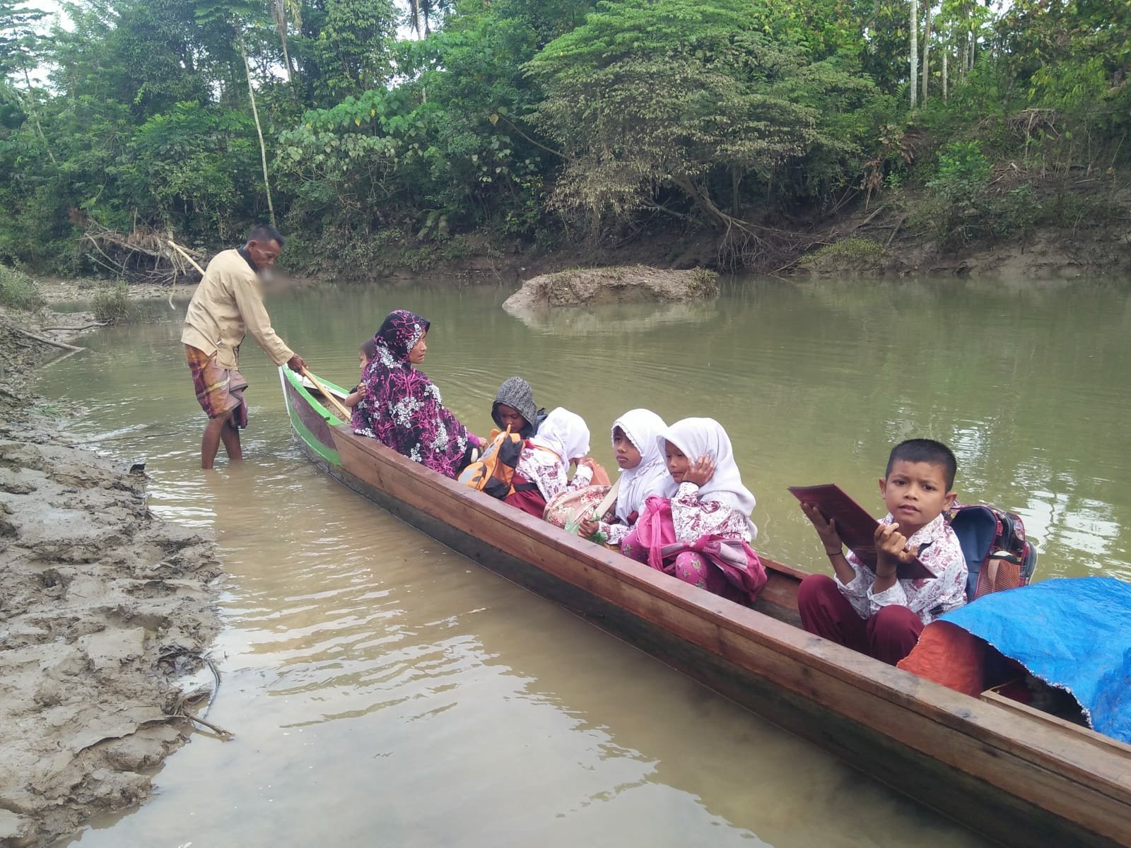 Di Dusun Sarah Raja, Desa Lubok Pusaka, Kecamatan Langkahan, Kabupaten Aceh Utara, tidak ada Sekolah Dasar (SD). Anak-anak warga dusun terpencil itu naik perahu untuk belajar di SD Dusun Sarah Gala, Gampong Sah Raja, Kecamatan Pante Bidari, Kabupaten Aceh Timur. Mereka calon penerus masa depan bangsa yang belum mendapatkan akses pendidikan layak dan mudah. Bocah-bocah tersebut harus berjuang keras, susah payah, dan berisiko besar untuk dapat mengenyam pendidikan dasar.