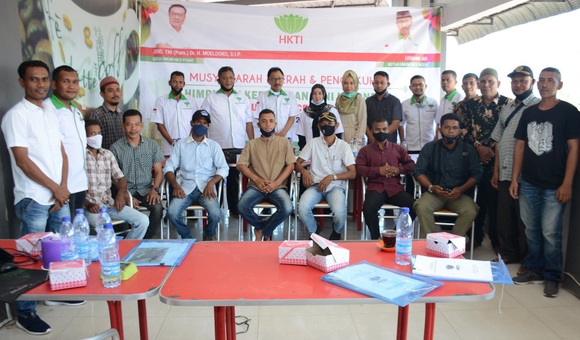 ACEH UTARA – Ketua Dewan Pimpinan Daerah (DPD) Himpunan Kerukunan Tani Indonesia (HKTI) Provinsi Aceh, Usman AR., mengukuhkan pengurus HKTI Kabupaten Aceh Utara periode 2021-2026, di Cafee Maliki, Tanah Luas, Sabtu, 12 Juni 2021.