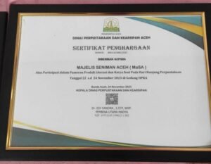 BANDA ACEH – Majelis Seniman Aceh (MaSA) mengikuti pameran buku dan pertunjukan sastra di acara Hari Kunjung Perpustakaan yang dilaksanakan Dinas Perpustakaan Dan Kearsipan Aceh, di Gedung Layanan Perpustakaan, Banda Aceh, 22-24 November 2023.