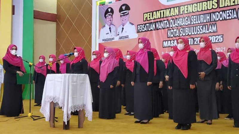 SUBULUSSALAM – Ketua Persatuan Wanita Olahraga Seluruh Indonesia (Perwosi) Aceh, Dr. Ir. Dyah Erti Idawati, M.T melantik Hj. Mariani Harahap, S.E sebagai Ketua Perwasi Kota Subulussalam periode 2021-2025 berlangsung di Aula PKK, kompleks pendopo wali kota setempat, Selasa, 28 Desember 2021.