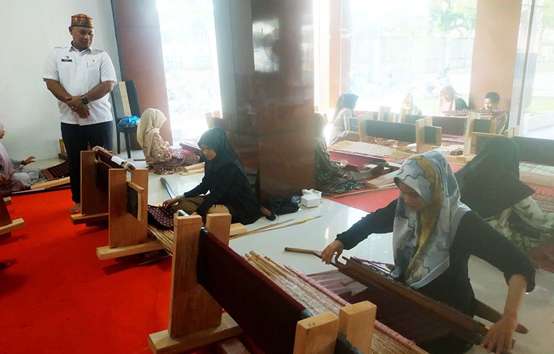 [Kepala Disdagperinkop-UKM Lhokseumawe M. Rizal memantau peserta pelatihan menenun di Kompleks Wisma Tamu Kota Lhokseumawe, Rabu, 6 Desember 2023. Foto: portalsatu]