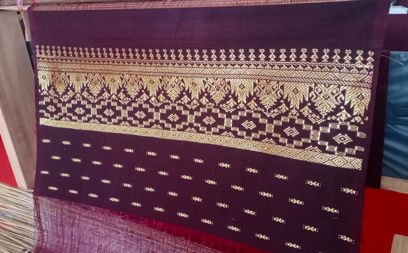 [Kain tenun karya peserta pelatihan menenun di Kompleks Wisma Tamu Lhokseumawe. Foto: Ilham]