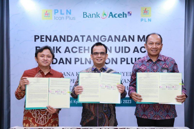 BANDA ACEH – Bank Aceh bersama PT PLN (Persero) Unit Induk Distribusi Aceh, PLN Icon Plus menandatangani Memorandum of Understanding (MoU) rencana kerja sama penyediaan dan pemanfaatan layanan serta produk para pihak.