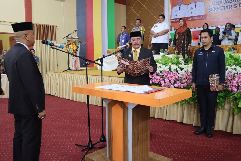 SUBULUSSALAM – Wali Kota Subulussalam, H. Affan Alfian Bintang, S.E melantik H. Sairun, S. Ag., M. Si sebagai Sekretaris Daerah (Sekda) Kota Subulussalam dalam acara Pengambilan Sumpah Janji Jabatan Pimpinan Tinggi (JPT) Pratama di Aula pendopo wali kota setempat, Jumat, 5 Januari 2024.