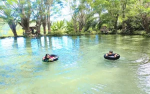 Jika pada umumnya kolam renang dibuat menggunakan dinding keramik, namun tidak demikian halnya objek wisata yang satu ini, karena dinding-dinding kolam terbuat secara alami dari akar-akar pohon-pohon yang mengelilingi kolam yang berukuran sekitar 25×30 meter itu.