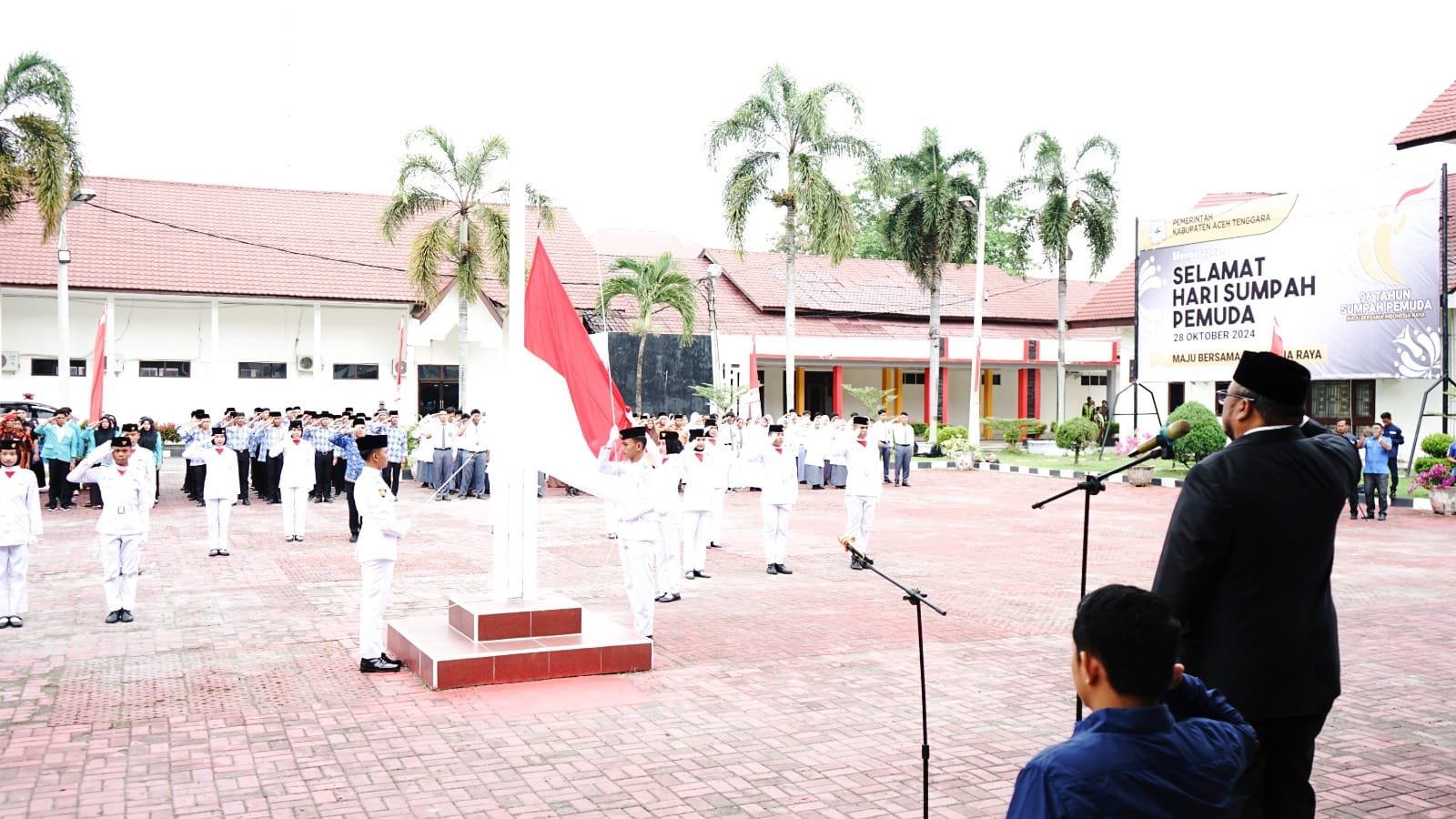 Sekretaris Daerah (Sekda) Aceh Tenggara, Yusrizal, S.T., selaku pembina upacara membacakan pidato Menteri Pemuda dan Olahraga Republik Indonesia, Ario Bimo Nandito Ariotedjo, terkait peringatan Hari Sumpah Pemuda 2024.