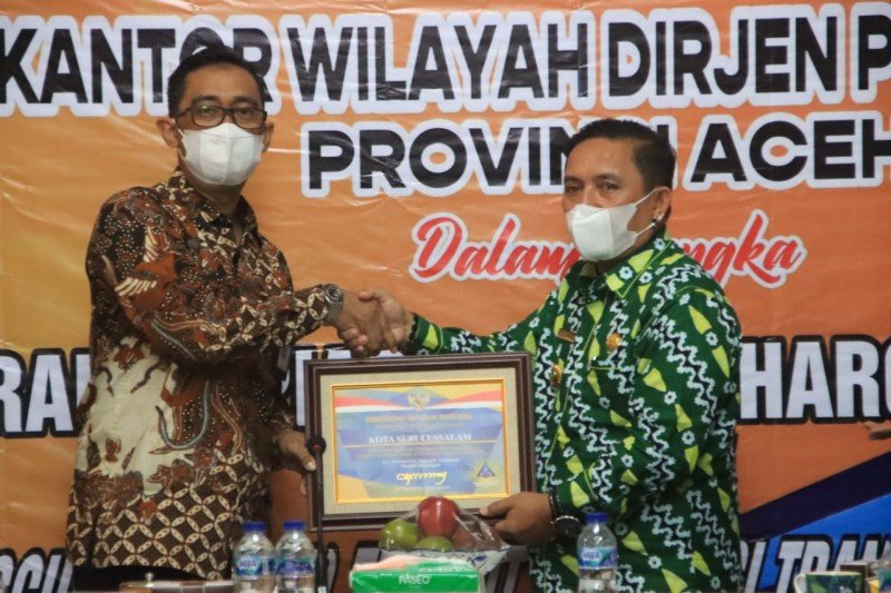 Piagam penghargaan tersebut diserahkan langsung Kepala DJPb Provinsi Aceh, Syafriadi diterima Wali Kota Subulussalam, H. Affan Alfian Bintang di Pendopo Wali Kota Subulussalam, Kamis, 21 Oktober 2021.